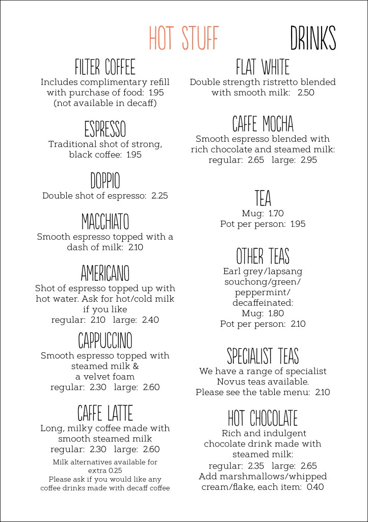 Cafe menus